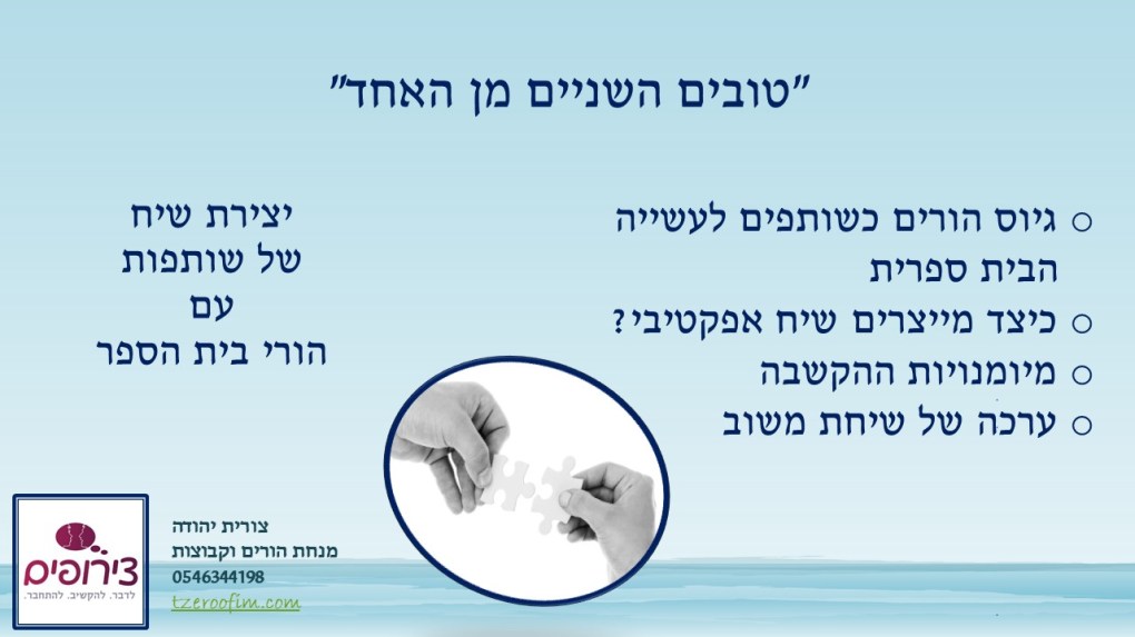 נושאים מרכזיים: כיצד מייצרים שיח אפקטיבי, מיומנויות הקשבה, ערכה של שיחת משוב.